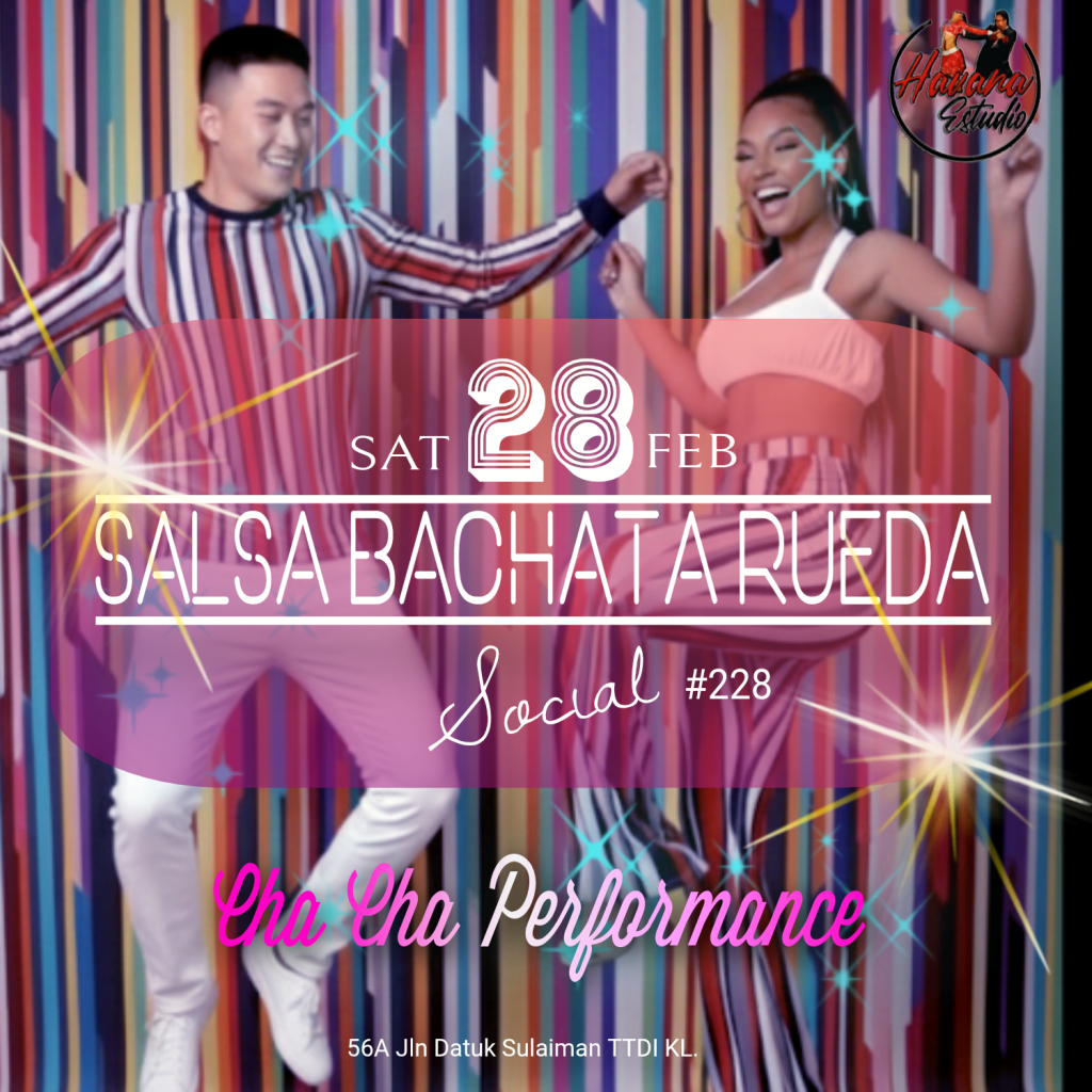 - Chacha On2 Shines & Partnerwork (Open Lvl) – Sun 2-3pm – Salsa experience recommended, Year 3+ programme, open level = all are welcome to join – contact Sam 012-280-6969